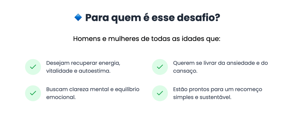 👉 A verdade é que você não precisa de mais uma dieta restritiva. O que você precisa é de um recomeço realista, que une autocuidado, clareza mental e alimentação inteligente.